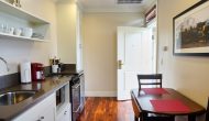 Sleeps 2 Guests. Set up like a Modern Studio Apartment (Great for extended stays!) with Queen bed, Dining Area, Kitchen (all kitchenware included). Bathroom with glass shower. Wi-Fi, Cable TV, Microwave, Mini-Fridge, Keurig, free parking. Discounted rate available on stays of five nights or more. Please note: this room is located in a building adjacent to the Historic Hotel.
